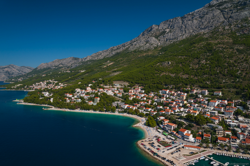 Baška Voda, u podnožje veličanstvenoga masiva planine Biokovo, na zapadni dio Makarskoga primorja, u Dalmaciju, na hrvatsku obalu Jadrana!